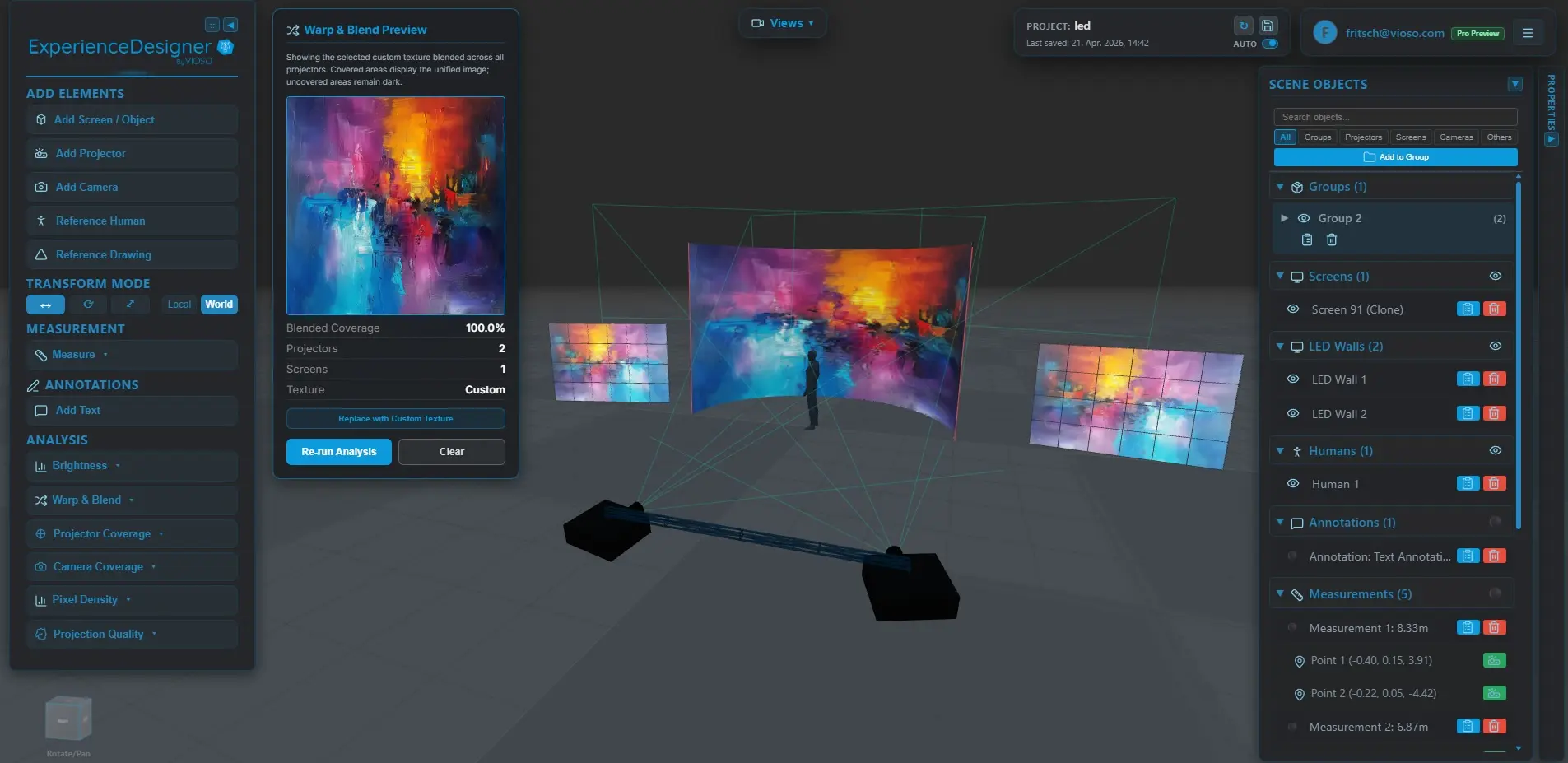 Vioso Experience Designer permite diseñar y validar sistemas multiproyector antes de llegar al recinto