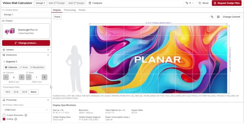 Planar fue pionera en las herramientas de diseño de videowalls hace más de una década. La calculadora de videowall original de la empresa seguirá siendo una herramienta de diseño para videowalls LCD, dando soporte a la línea de productos del sistema de videowall LCD Clarity Matrix G3 de Planar con capacidades probadas de planificación y configuración antes de realizar una compra.