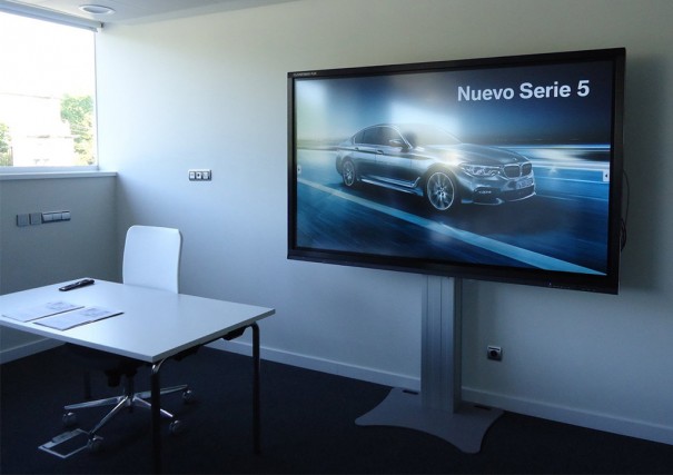 Los monitores Clevertouch fueron instalados en BMW con soportes de suelo fijo motorizados Traulux, que permiten ajustar la altura con una variación de altura de 500 mm, lo que posibilita un acceso completo a funciones táctiles. Cuentan con un diseño sólido, perfecto para displays de gran tamaño o monitores táctiles.