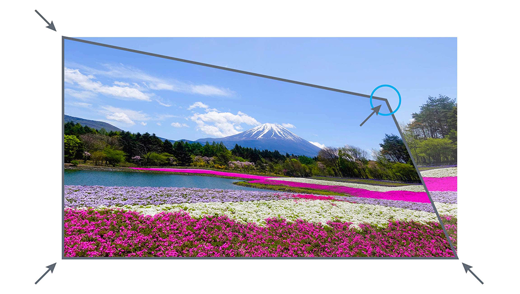 El ajuste geométrico de cuatro esquinas también se incluye para paredes irregulares o donde la colocación del proyector es incómoda y debe montarse en ángulo.