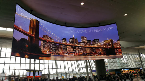 La Terminal 4 del aeropuerto internacional John F. Kennedy ha completado la última fase de un proyecto de digital signage, que se ha llevado a cabo durante varios años, y que se basa en la instalación de una serie de pantallas Led curvas de gran formato de NanoLumens.