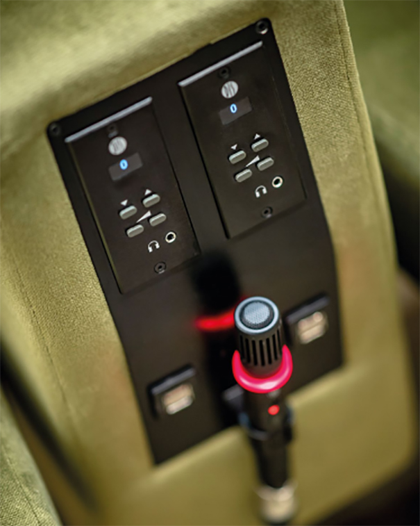 Una tecnología que, a través del proyecto desarrollado, ha quedado integrada en los espacios respetando su moderno y minimalista diseño. Un claro ejemplo de ello ha sido la instalación de 96 micrófonos de mano HM4042 (uno cada dos butacas ) que, combinados con los 192 selectores de canal compacto con pantalla de cristal líquido CS6340, permiten a los asistentes controlar el volumen y seleccionar el canal de audio deseado para escuchar la traducción.