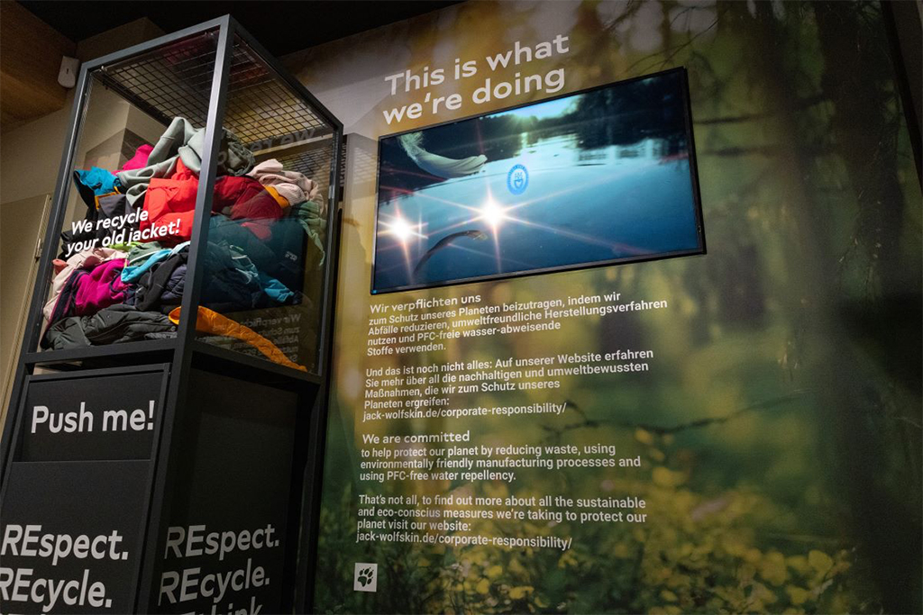 Jack Wolfskin se asoció con PPDS y el especialista en integración de Hamburgo pilot Screentime, para desplegar una solución audiovisual integral que transforma la emblemática tienda de Fráncfort en un local de nueva generación. Con este objetivo se ha instalado una pared Led de 7,5 metros cuadrados, configurada con equipos Philips L-Line Serie 7000, cuyo objetivo es atraer la atención de clients y visitantes.