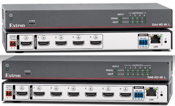 Los modelos DA4 HD 8K L y DA6 HD 8K L, de cuatro y seis salidas, respectivamente, para señales HDMI 2.1, se suman a la gama de amplificadores de distribución de Extron para mejorar el rendimiento en instalaciones ProAV.
