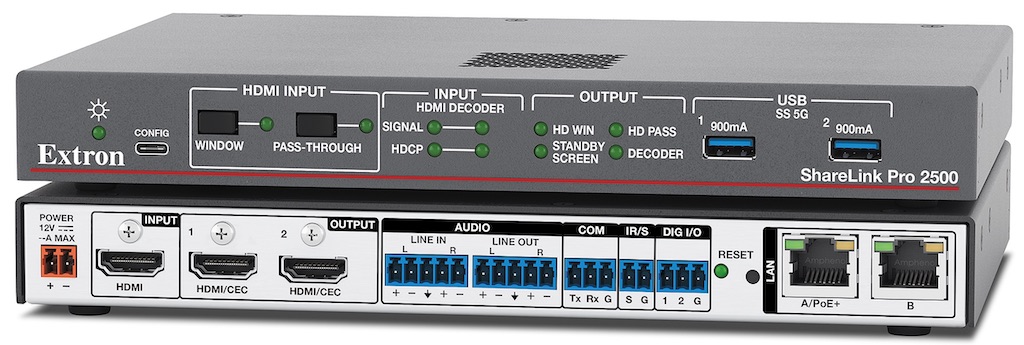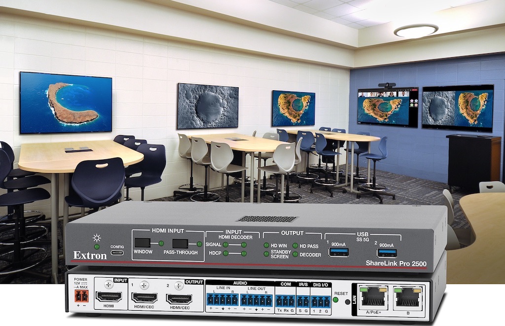 El nuevo ShareLink Pro 2500 de Extron permite presentar contenido de forma inalámbrica 4K desde cualquier dispositivo móvil en hasta dos pantallas para facilitar la colaboración en salas de reuniones.