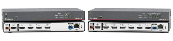 Extron ha anunciado la disponibilidad de los amplificadores de distribución DA4 HD 8K L y DA6 HD 8K L de cuatro y seis salidas para señales HDMI 2.1. Admiten resoluciones de hasta 8K/60, incluidas aplicaciones 5K como Microsoft Teams 21:9 en instalaciones Front Row.