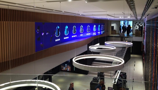 Entre sus elementos más novedosos destaca una impresionante pantalla Led curva que preside el hall principal de la tienda, fruto del proyecto de suministro e instalación de los sistemas de visualización realizado por la compañía Led Dream junto a su partner Net-IP.