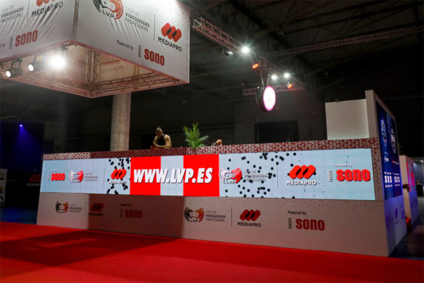 Sono ha sido además partner audiovisual oficial y patrocinador de la sala vip de la Liga de Videojuegos Profesional. El stand de 170 metros cuadrados de superficie contaba con una pantalla perimetral Led de 31 metros de alta resolución, 12.000 píxeles, y una Led central de 4×2 metros en las escaleras de acceso.