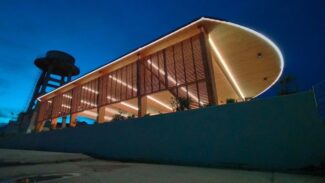 Esta aula se ha diseñado como una cubierta inclinada, con forma curva sobre pórticos de madera, cuya iluminación corre a cargo de Arsenco, como empresa constructora del proyecto, el distribuidor Onulec y los productos de Grupo Prilux instalados en este espacio.