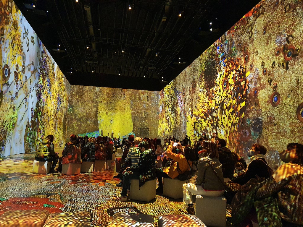 La primera producción inmersiva de gran formato con la que ha iniciado su actividad MAD la ha protagonizado la obra del pintor austriaco Gustav Klimt, que previamente se había realizado en el espacio Ideal Barcelona.