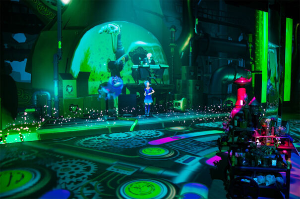 Entre bastidores del nuevo local de ocio inmersivo localizado en Distillery District, seis equipos M 4K25 RGB de Christie preparan el escenario para recibir a los visitantes; mientras que veinte sistemas Griffyn 4K35-RGB, instalados en el espacio principal, sumergen al público en los dos espectáculos.