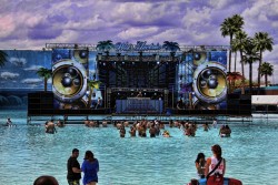 El diseño de iluminación de Routhier para esta gira incluye 48 unidades Proteus Atlas, alineadas por encima y por detrás del escenario en grupos de cuatro, todas expuestas a los elementos.