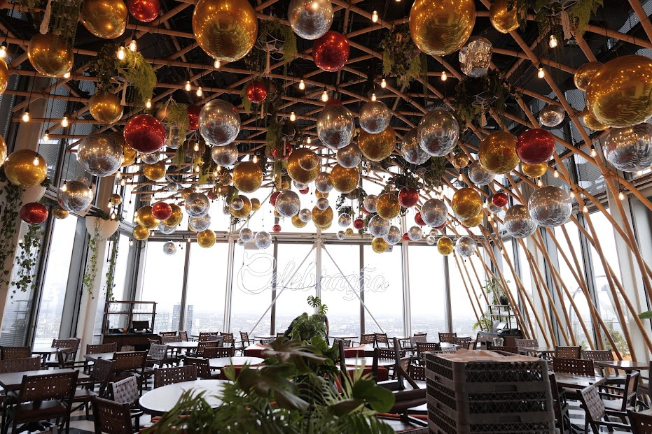 Este restaurante consta de un comedor principal y espacios adicionales en los pisos 38 y 39. El salón principal es donde los huéspedes pueden disfrutar de una fusión de cocina japonesa, brasileña y peruana desde el desayuno hasta la cena, con cócteles personalizados en tres bares separados. El piso 38 es el espacio más grande dentro de Sushisamba, con un techo de doble altura y dos terrazas al aire libre. También alberga un bar de sushi y una parrilla. El bar y salón del piso 39 se encuentran en un entrepiso con vista al comedor. Este espacio privado es conocido por sus fiestas exclusivas y cenas VIP.