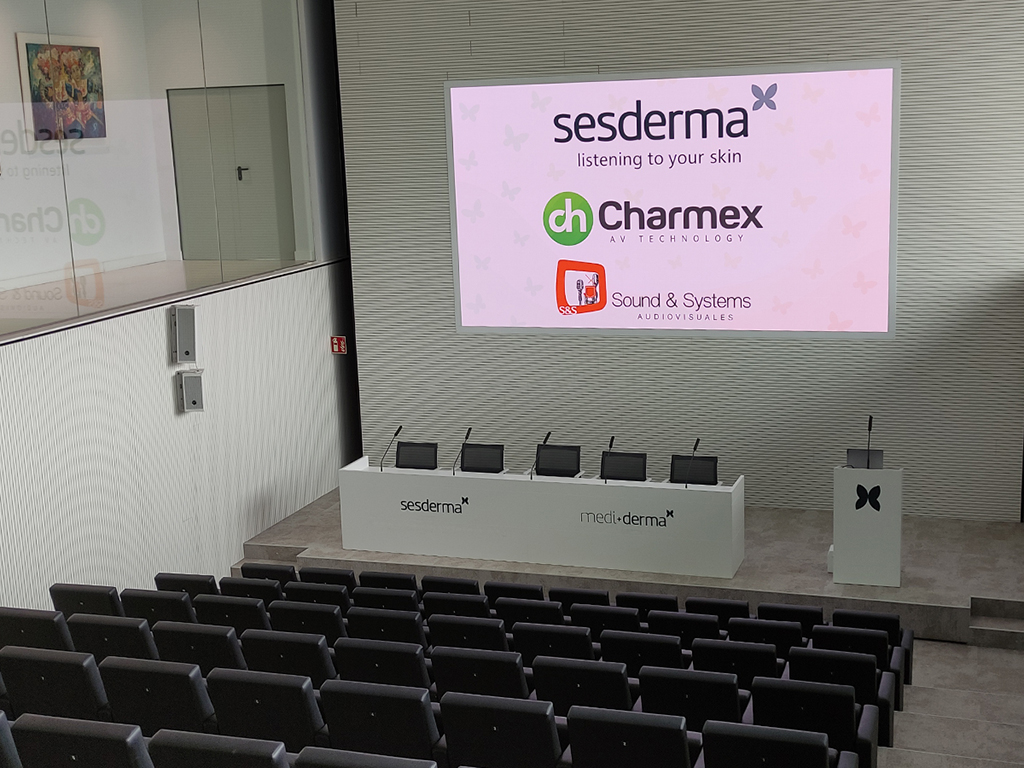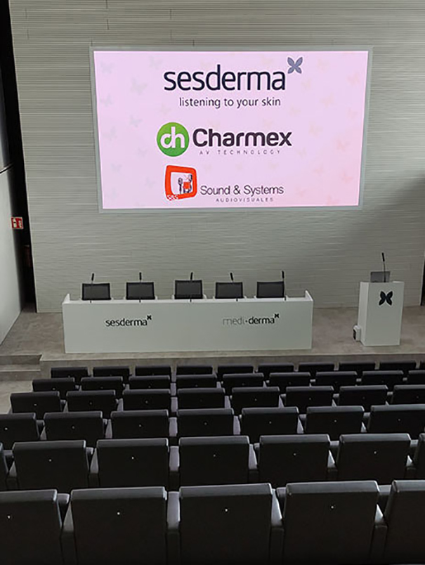 El laboratorio dermatológico español Sesderma, referente en la formulación y fabricación de soluciones dermocosméticas, ha confiado en Samsung, junto con Sound and Systems Audiovisuales y Charmex, para renovar el sistema audiovisual de su salón de actos en la sede principal de Puzol (Valencia). El objetivo era sustituir el antiguo videowall con la mínima intervención física del auditorio.