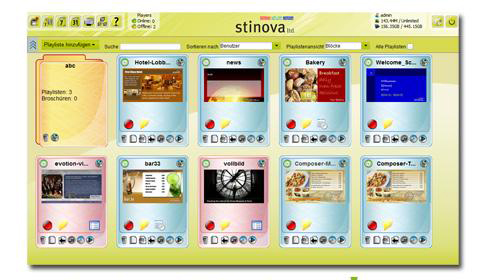 Basado en un servidor Web y en la plataforma de reproductor del cliente, las pantallas pueden ser manejadas fácilmente a través de un navegador web desde cualquier lugar en cualquier momento a través de la Red. El DMX5 Personal Edition de Stinova está diseñado específicamente para las pequeñas instalaciones en las que se necesita gestionar pantallas individuales a través de la Red. El DMX5 Personal Edition está especialmente indicado para su uso en aplicaciones de pantalla de bienvenida, así como en la señalización de información general y en los displays de marketing de producto.