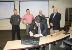 Como adelanto de su próximo lanzamiento, el presidente y CEO de AMX, Rashid Skaf, se ha encargado de entregar personalmente la primera unidad del switcher todo-en-uno Enova DVX-3150HD a la universidad de Wake Forest, que se prepara para inaugurar su nuevas instalaciones de formación a distancia MBA.