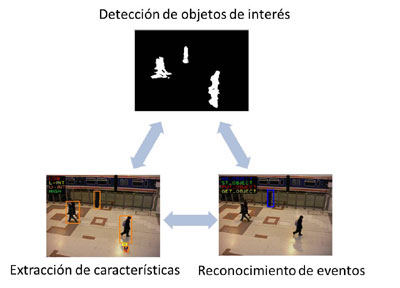 Current automatic video surveillance systems are based on three-stage analysis: detecting objects or people of interest, tracking and extracting features from these objects or people, and detection of unusual events (abandonment of objects, entry into prohibited areas or acts of vandalism).
