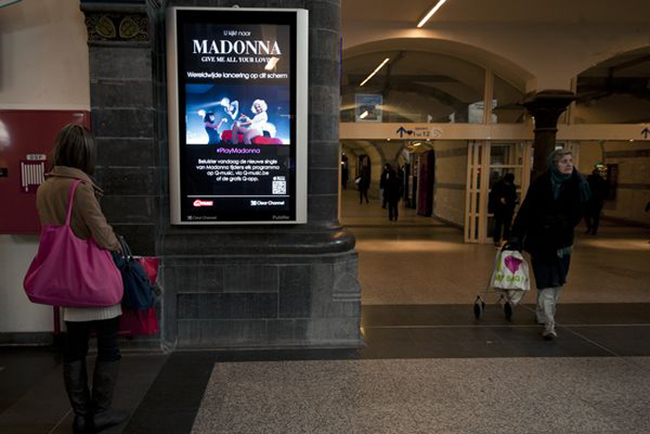 The company specialized in outdoor advertising Clear Channel premiered simultaneously in more than 1.600 digital billboards featuring pop star Maddona's new single “Give Me All Your Luvin'” and its music video across the globe. The advertising firm, which has more than 1.600 digital signs in the subway, railway stations, shopping malls and bars in the United States, France, Spain, Sweden, Norway, Singapore, Belgium, Finland and the United Kingdom, estimates that the promotional campaign could reach more than 150 millions of people around the world.