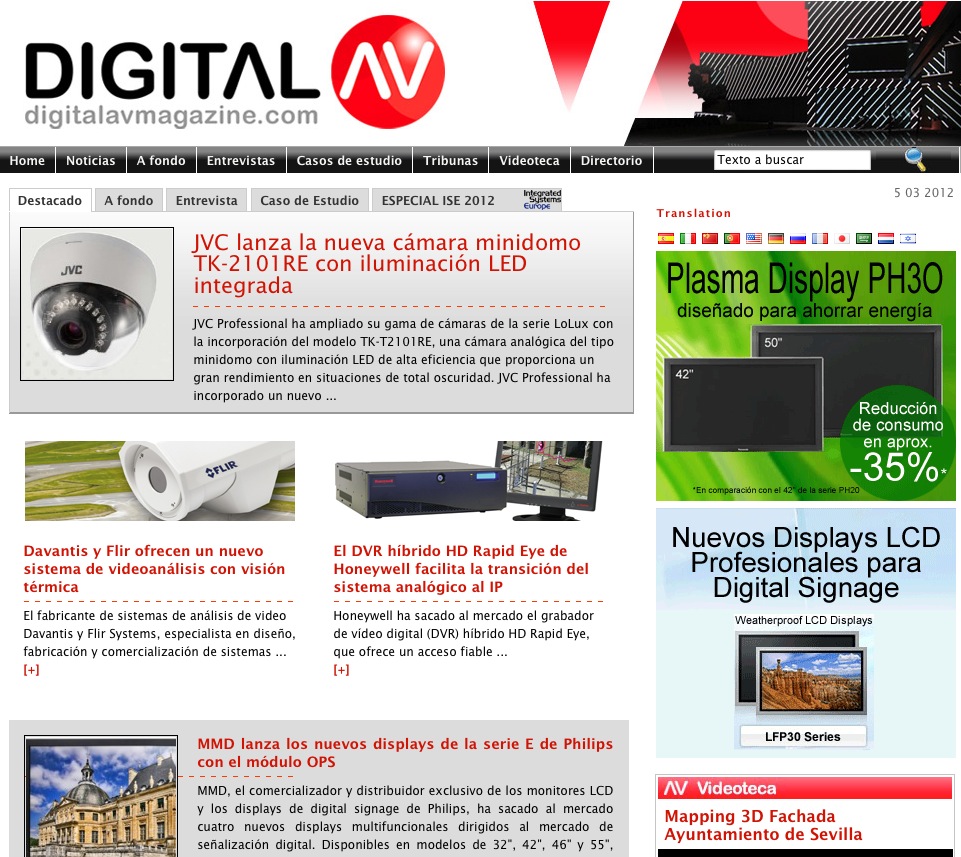 Digital AV, el nuevo medio de Underwood Communication especializado en soluciones avanzadas audiovisuales en entornos profesionales, no broadcast, se ha posicionado en apenas tres meses como el medio de referencia en digital signage, simulation, dynamic advertising, security, display, projection, museum…
