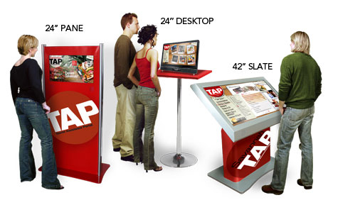 El TAP (Portal de Asistencia al Turista) es un kiosco de pantalla táctil interactiva, colocados en lugares turísticos de alto tráfico, y actúa como una guía turística virtual y un centro de información pública. Ofrece fácil acceso a la historia, la cultura y los acontecimientos locales, las previsiones meteorológicas y las guías de empresas locales, completadas con menús y mapas, photo galleries – el sistema TAP es una herramienta valiosa para cualquier comunidad que desea generar ingresos y una percepción positiva de su zona.