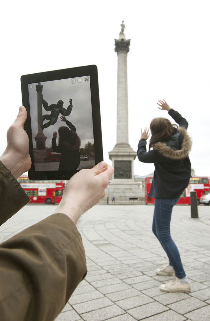 When a compatible device is pointed towards Big Ben, the DeLorean from 'Back to the Future'’ appears flying over the bridge; when pointing to Trafalgar Square, King Kong climbs Nelson's Column; and a Tyrannosaurus Rex from 'Jurassic Park'’ will head towards Buckingham Palace when the devices are pointed in its direction.