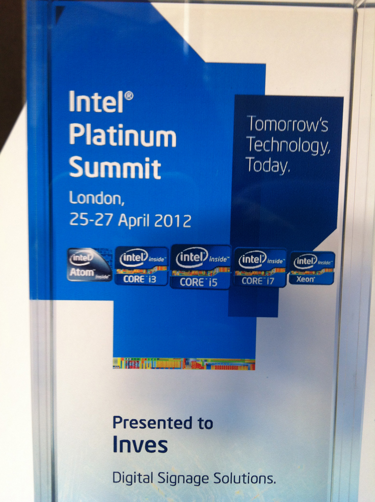 Intel awards Inves the award for Innovation in Digital Signage Solutions