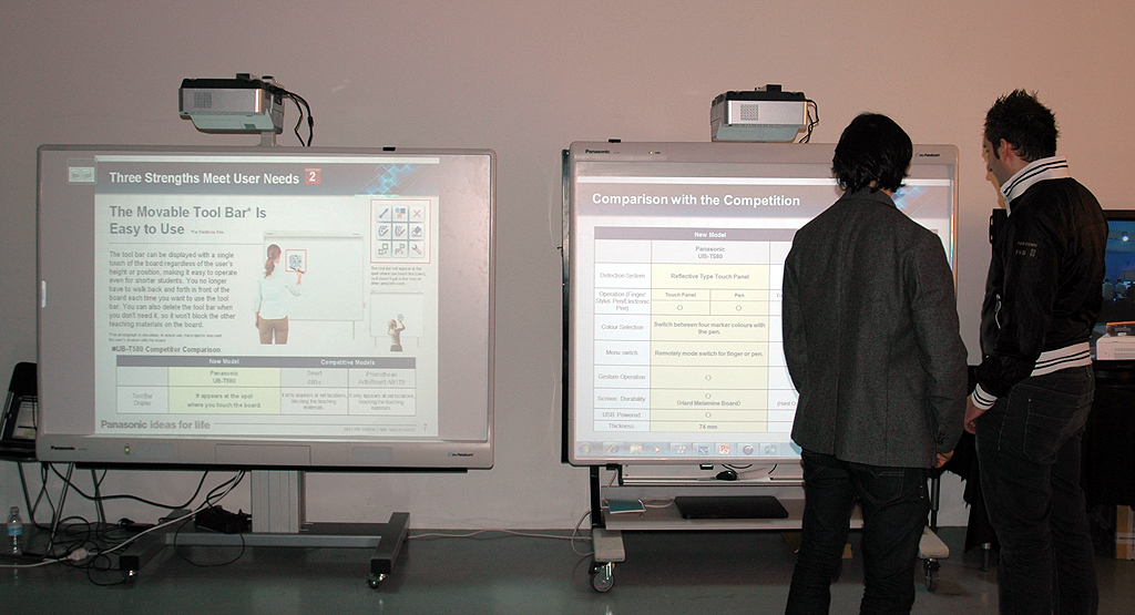 Finally, la muestra de Panasonic se completa con las nuevas pizarras de la compañía japonesa, la UB-T580 y la UB-T880, un modelo superior, which has 3 contact points, altavoces y tecnología capacitativa.