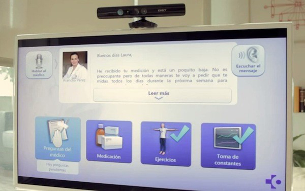 El proyecto se basa en el sistema Kinect de Microsoft para facilitar la interacción médico-paciente. Requiere una mínima instalación en el hogar de éste -sirve su propio televisor- y, in fact, ha sido seleccionada por ser de fácil uso también para personas de avanzada edad. A través de este programa, el paciente recibe en el televisor de su casa las indicaciones y las acciones diarias que le indican su médico o su enfermera.