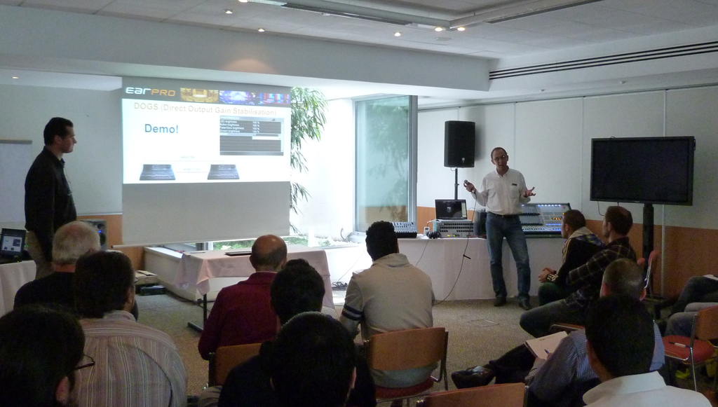 A lo largo del día, los participantes pudieron escuchar las presentaciones de Andy Brown, Senior Product Manager de Soundcraft; Richard Ayes, Product Manager de Soundcraft; y Jamie Ward; Regional Sales Manager de Harman, además del Product Manager de Soundcraft en España, Kiko Margalef. Como novedades destacables, se presentaron en detalle el nuevo software V2.1 para Si Compact, las nuevas posibilidades de conectividad remota (CBS, DOGS) o la nueva aplicación ViSi para iPad.