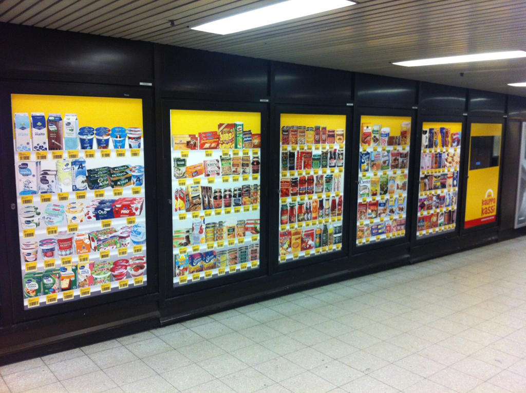 Using out-of-home digital media not only to promote sales, but also to carry them out, These virtual stores have products from the Alepa supermarket chain of S Group, that has some 80 conventional stores in Helsinki area.