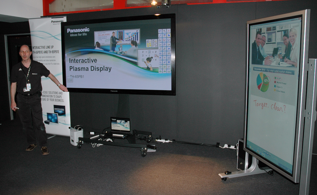 Otra de las novedades de Panasonic ha sido el display de plasma interactivo, que ofrece una excelente visibilidad y operatividad, taking advantage of all the advantages of free-emitting plasma panel displays, including a large screen, a very rich color expression, a wide viewing angle, and high speed response. Available in formats 65, 85 y 103 inches, la nueva pantalla HD de plasma interactiva incorpora conectividad wireless y la tecnología píxel a píxel de Panasonic, que permite mostrar la fuente nativa sin variación de tamaño.