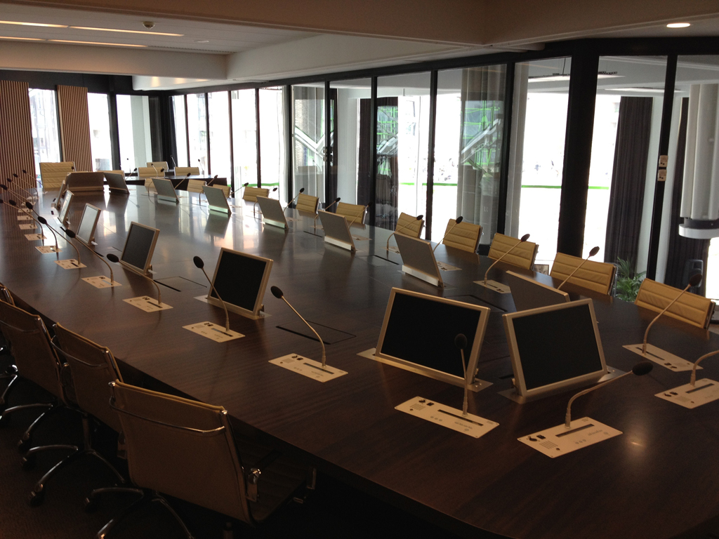 For your part, las unidades digitales CDSVAN instaladas por Brähler ICS y su partner local EV Corporate transmiten hasta 32 canales de idiomas. In addition, cada participante dispone de un sistema de votación con tres teclas iluminadas. Cada equipo dispone de un interface para conectar una lámpara y de un micrófono extraíble. De esta manera se consigue una mesa de conferencias flexible y que se puede transformar rápidamente en función de las necesidades de cada reunión. So, se puede tener una mesa sin ningún elemento obstrusivo para desplegar planos y documentos, o una sofisticada mesa con sistema de conferencias y de votación y con iluminación personalizada.