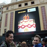 For the anniversary of 30 years of McDonald's, An action was generated in the Plaza del Callao inviting people to blow out the candles of a virtual cake projected on the interactive screens. Thanks to an augmented reality application developed for iPhone and Android devices, those attending the meeting were able to connect to the screen with QR codes, downloading an APP application, and through your Facebook profile and participate live in the massive blowing out of the birthday cake candles and access prizes redeemed at the establishments of the fast food restaurant chain.