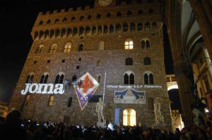 La marca de ropa deportiva española Joma se ha hecho con las riendas de la equipación oficial de la Fiorentina italiana, y para la presentación de los nuevos uniformes del club trasalpino para la temporada 2012/2013, se han decantado por la realización de un espectacular mapping en Florencia. The company Romera Design and Infographics, especializada en trabajos de postproducción y grafismo, ha sido la responsable del evento con cerca de 7.000 personas en la Piazza della Signoria, en la capital de la Toscana, en la que se ha dado a conocer la nueva camiseta del club de fútbol local.