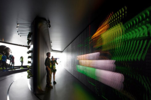 El túnel de los sentidos, un corredor de 100 metros creado con Antfood, se montó a lo largo de un pabellón rodeado de videowalls LED. Un software capturaba los datos de velocidad de los atletas olímpicos, y representaba las imágenes en las paredes LED que se movían a la misma velocidad que los atletas. El sonido también se desplazaba a través del túnel, para ofrecer a la gente las sensaciones auditivas de cómo suena la velocidad olímpica.