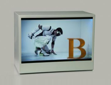In the Lumibox, a real physical object is mixed with the video content and the exhibition of the real product behind the transparent LCD monitor allows the creation of effects to highlight it., with imagination as the only limit.