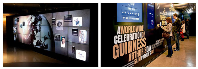 Diageo and Tribal DDB have created the world's largest interactive screen for Guinness in the beer brand's former factory, The Guinnesses Storehouse of Dublin, offering audiences a unique interactive digital brand experience. This space also has an interactive infographic that allows the public to play and explore while learning the history of the company and the famous beer and interacting with the screen., leaving your messages on it, share them online and on Facebook.