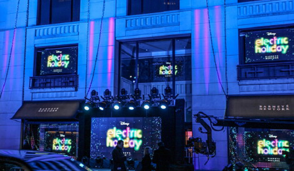 Los compradores que se paseen por Nueva York van a poder experimentar una experiencia electrizante cuando visiten Madison Avenue estas Navidades. En la tradición de los legendarias campañas comerciales navideñas de la Gran Manzana, la cadena de grandes almacenes Barneys New York, Walt Disney y Christie han puesto en marcha Electric Holiday, una presentación multimedia con personajes de Disney exhibiendo modelos de ropa exclusivos en un lienzo digital compuesto por 425 Christie MicroTiles instalados en los escaparates de la tienda insignia de esta cadena comercial.