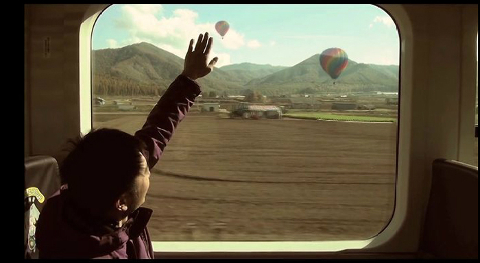 Cuando el viajero se sienta en el asiento del tren y ve cómo éste se desliza por las vías, esta ventana le permite extender la mano y añadir cosas a la escena que ve en el exterior. Si toca la parte inferior de la ventana, el objeto aparece más cerca, mientras que cuanto más arriba toque la ventana, los objetos se mostrarán más lejanos. Se pueden colocar en la ventana bandadas de aves que transportan a un niño pequeño, globos aerostáticos y aviones que vuelan más allá del tren. El proyector hace que las imágenes sean casi transparentes, por lo que nunca cubren el paisaje real.