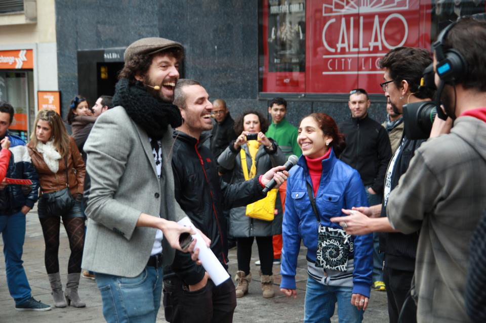 Las pantallas publicitarias gigantes que presiden los cines Callao, en el centro de Madrid, han servido de conexión para unir la capital de España y Berlín en un brindis interactivo organizado por Promperú y presentado por Marron y Juan y Damián, del programa de televisión ‘El Hormiguero’ de Antena3.
