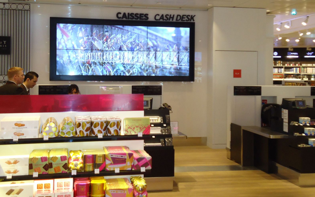 La tienda insignia del aeropuerto Charles de Gaulle abrió el 27 marzo de 2012 y está equipada con siete pantallas doble horizontales montadas en techo y un video wall de pantallas que abarcan nueve metros cuadrados. Una segunda tienda abrió el 28 de junio en la nueva sala de espera de la Terminal 2E del aeropuerto Charles de Gaulle, y estaba equipada exclusivamente con formatos de gran impacto: un par de display walls que abarcan 14 metros cuadrados cada uno, y una columna compuesta por 36 pantallas sincronizadas.