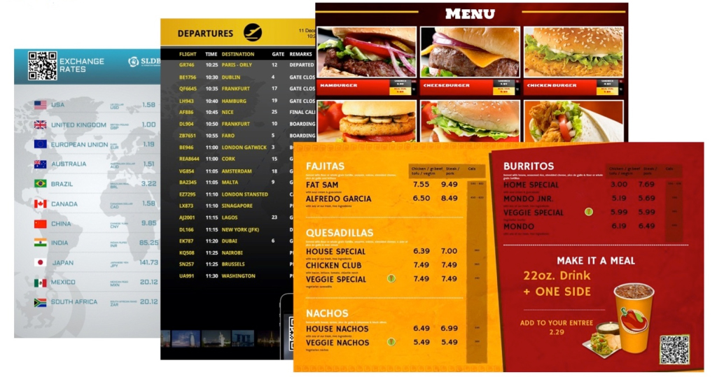 Contenido específico, como por ejemplo las últimas promociones, información nutricional, o la información para los empleados, puede ser rápidamente desplegado en múltiples pantallas con sólo pulsar un botón y programado para actualizarse dinámicamente, dependiendo de factores tales como la ubicación, la hora del día o cambios a fuentes de datos externas.