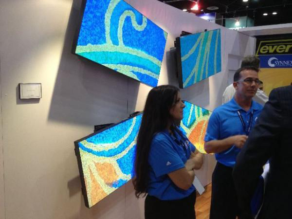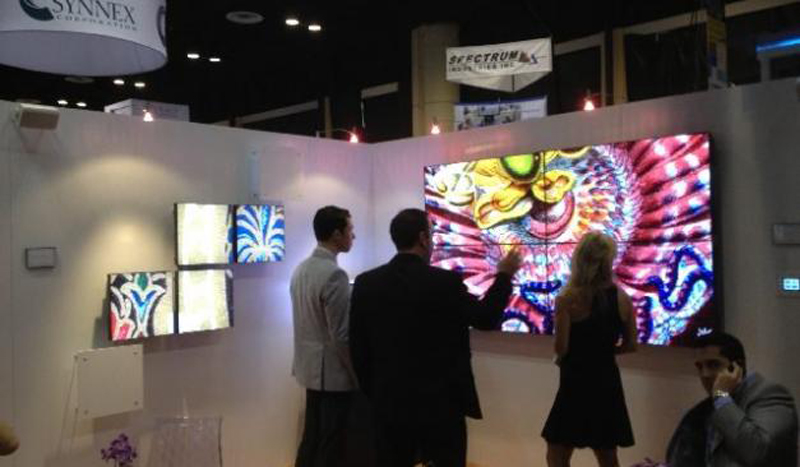 The presence of Almo Professional A/V dio un toque artístico y creativo al salón InfoComm 2013 with his Colección Canvas Digital. En su stand se exponían una galería de pantallas donde se fusionaba el arte y la tecnología, donde el digital signage cobraba un papel protagonista. Como si de una galería de arte se tratara, los displays visualizaba animaciones gráficas, representativas del arte digital.