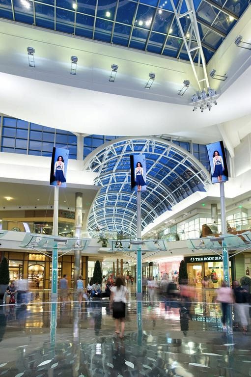 El centro comercial The Mall at Millenia, in orlando (Florida) ha renovado sus pantallas de vídeo por displays curvos Led de Daktronics, que están suspendidos en el techo en Grand Court, una gran plaza de ocio, entretenimiento y confort visual.