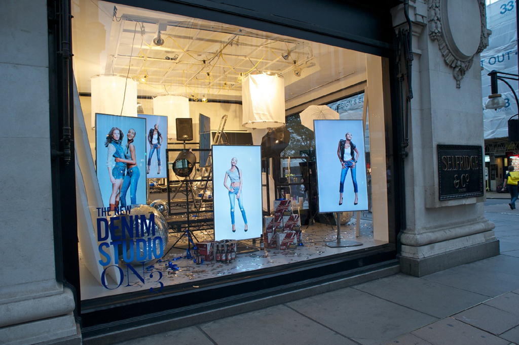 Su ventana principal, ubicada en la esquina de Oxford Street y Orchard Street, se convirtió en un estudio fotográfico gracias a las ocho pantallas que se instalararon y que contaban con el apoyo de los player de BrightSign. Otras dos ventanas incorporan una mezcla de pantallas verticales y horizontales ofreciendo una transmisión en vivo de Instagram con imágenes de los clientes vistiendo sus vaqueros favoritos.