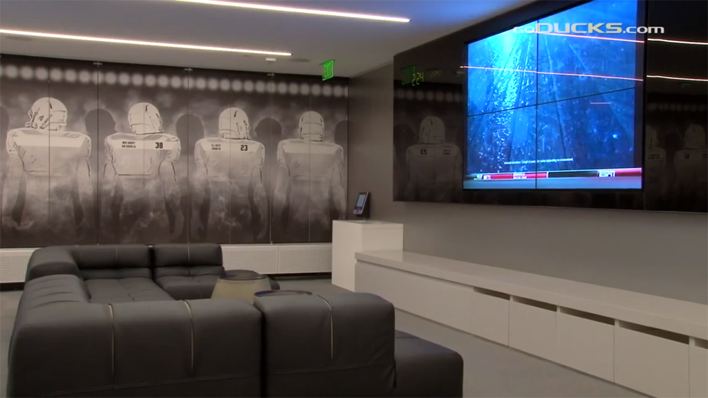 El nuevo edificio del equipo de fútbol americano Oregon Ducks da la bienvenida a sus visitantes con un video wall de 64 55” screens, y continúa la experiencia digital con grandes displays en el resto de las dependencias.