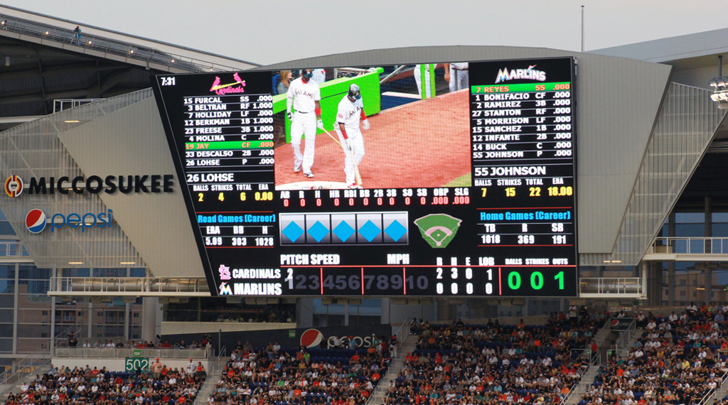 Haivision and Daktronics allow you to watch the matches live on the 700 flat screens installed at Marlins Park