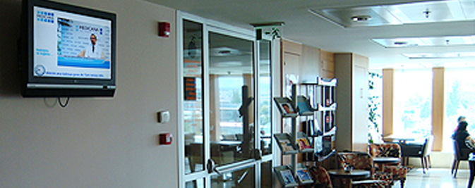 Atendiendo a este último, at the company Arbitron realizó un estudio para comprobar como eran acogidos, por pacientes y acompañantes, los contenidos que se mostraban en las pantallas digitales instaladas en centros sanitarios, concretamente los ubicados en las salas de espera y cafeterías. Este estudio fue encargado por MedCenterDisplay a Arbitron para que lo realizará sobre las pantallas que este fabricante había implantado en diferentes hospitales de Estados Unidos.