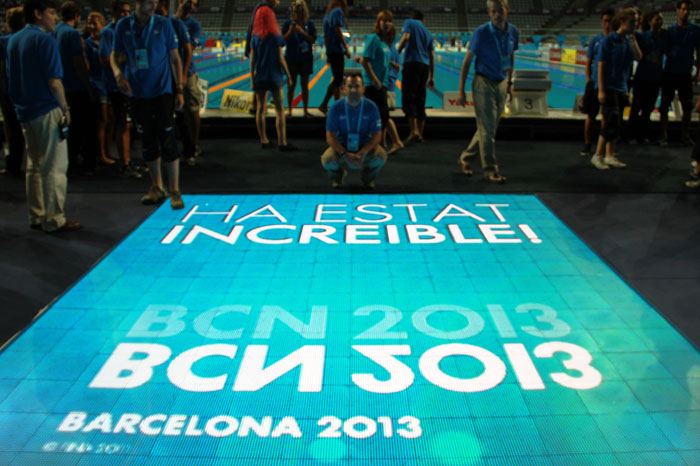 The audiovisual systems used in the Palau Sant Jordi and Port Vell pavilions, during the World Swimming Championships: Barcelona 2013, were supplied and installed by Sono.