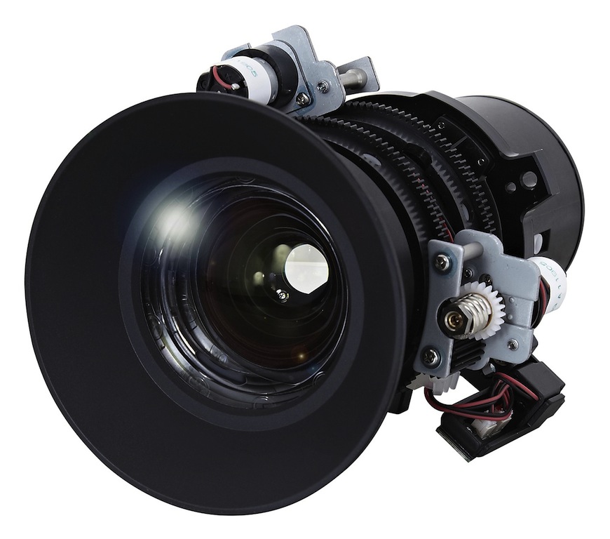 Este proyector profesional DLP XGA cuenta con opciones de lentes intercambiables (que se comercializan por separado), with capacity 0,99 a 3.00:1; zoom motorizado y funciones de enfoque de lente con alimentación vertical (50%) and horizontal (15%), así como filtro de polvo de doble capa para mejorar la disipación de calor en aplicaciones de uso continuo 24×7.
